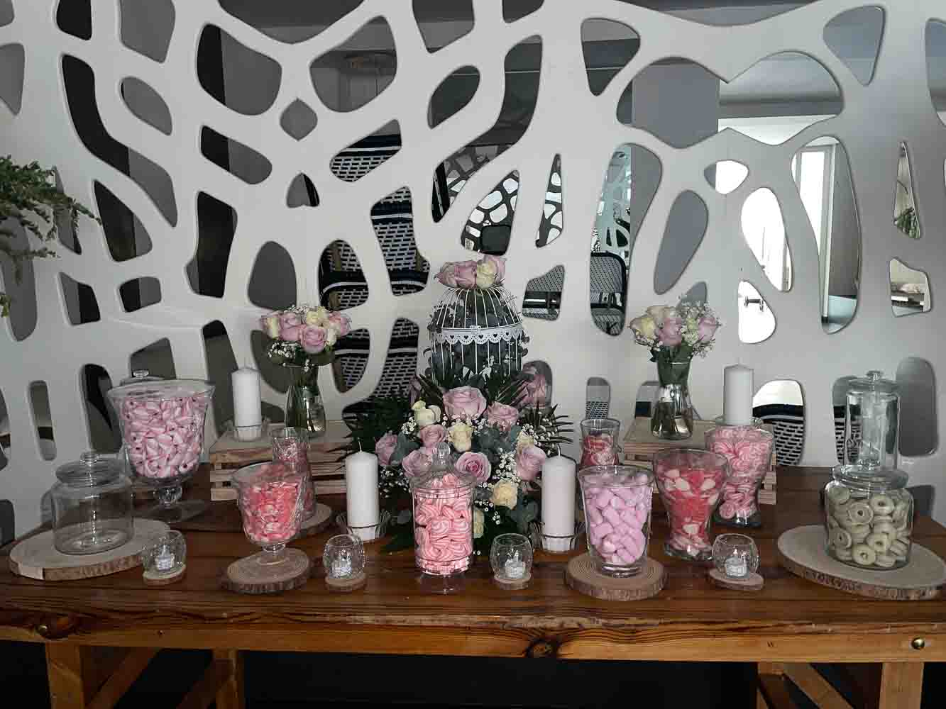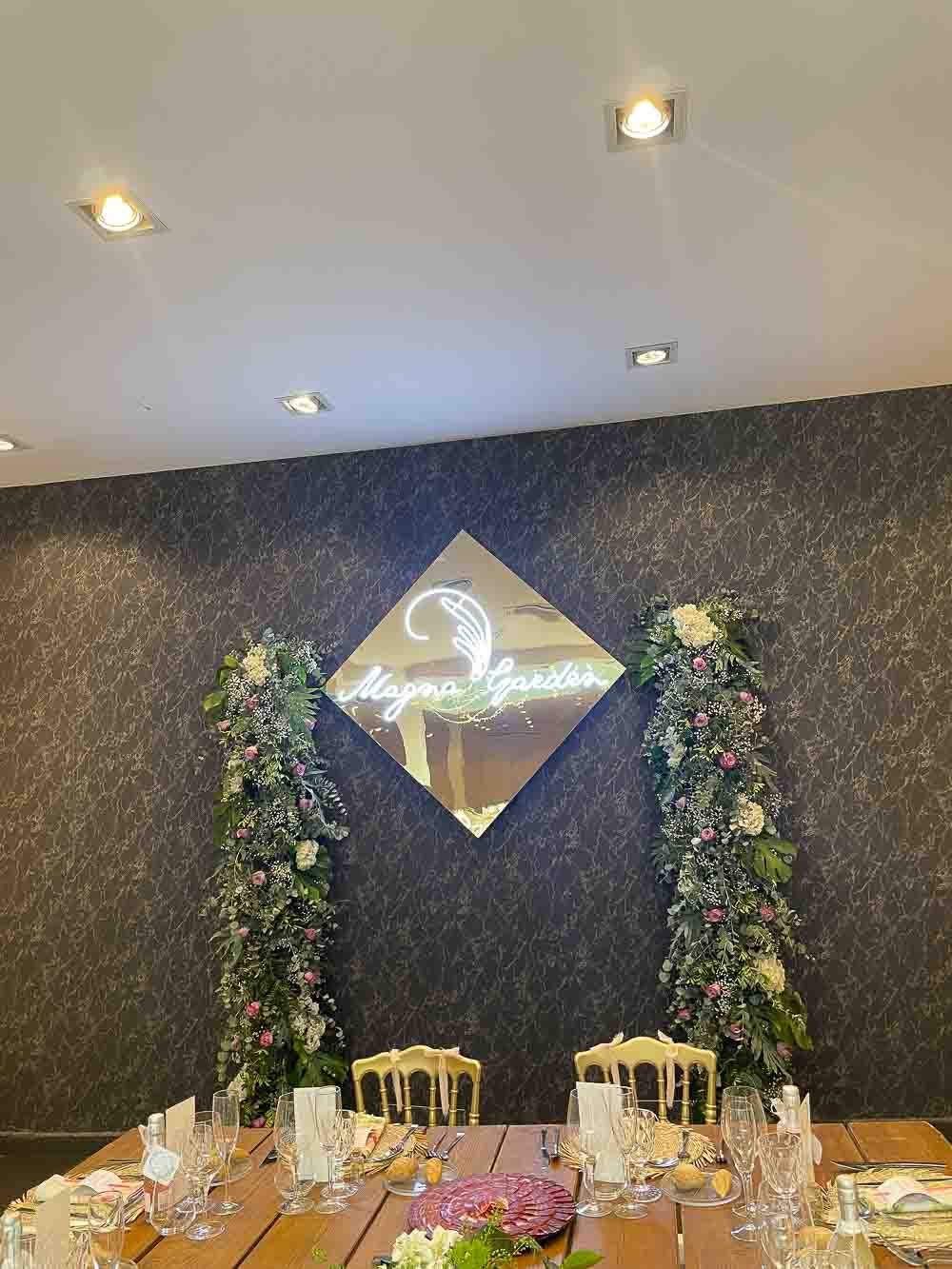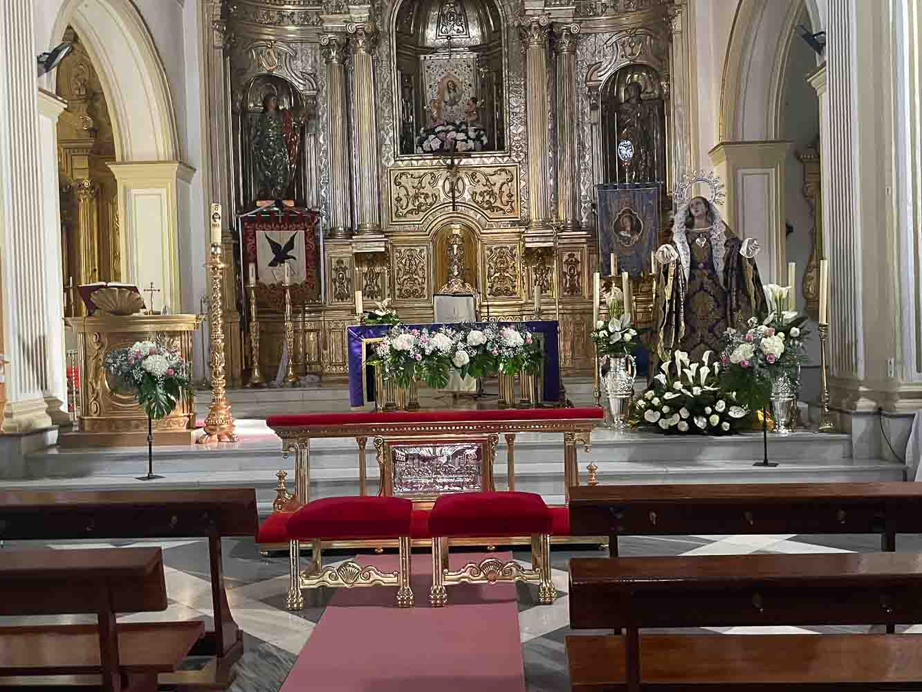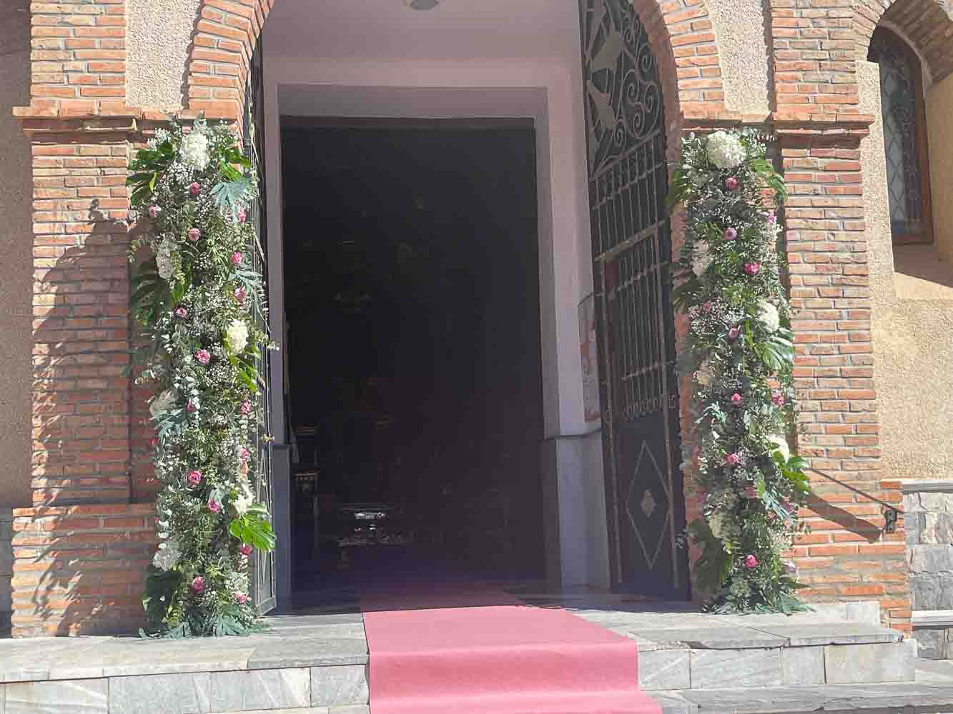 Boda en iglesia de Cabezo de torres con flor variada con toques rosa