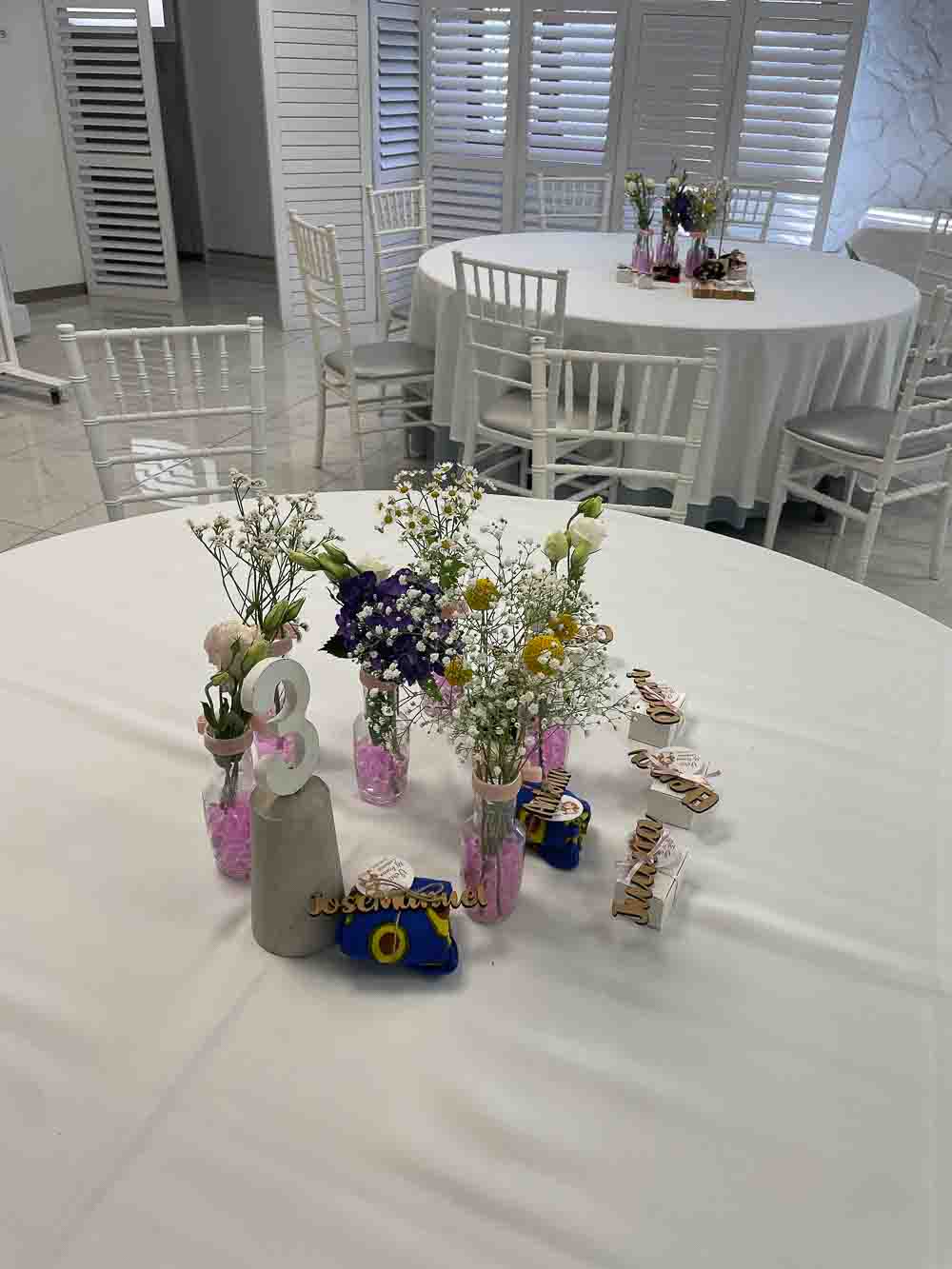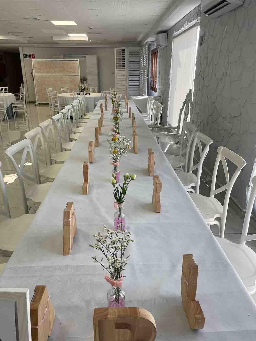Diferentes decoraciones para mesas en restaurantes para boda o comuniones, siempre cuidando cada detalle y petición de nuestros clientes