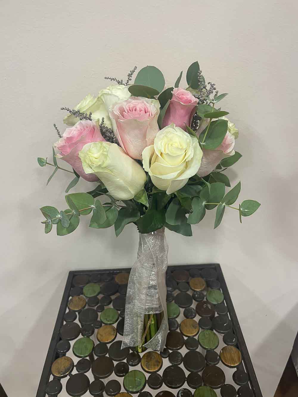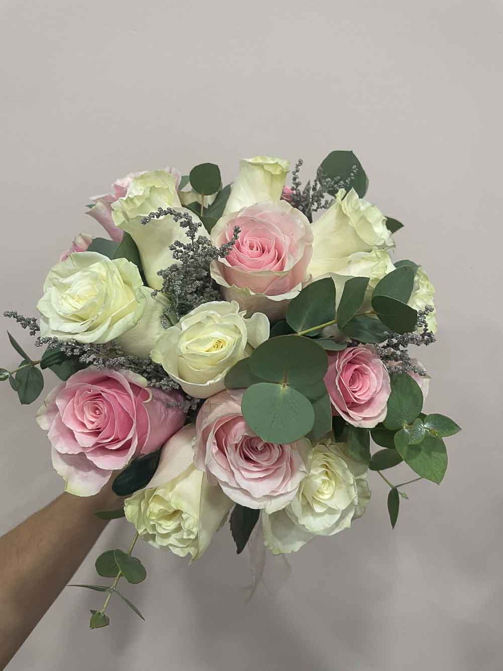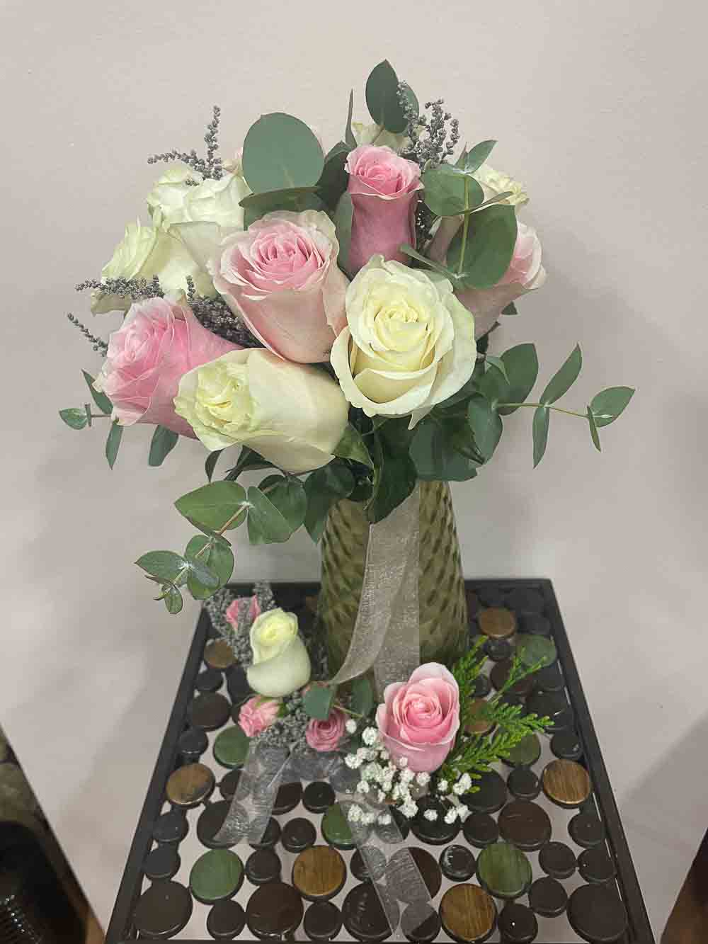 Ramo de novia de rosas blancas y rosas, creando la dulzura que nos pedía nuestra novia
