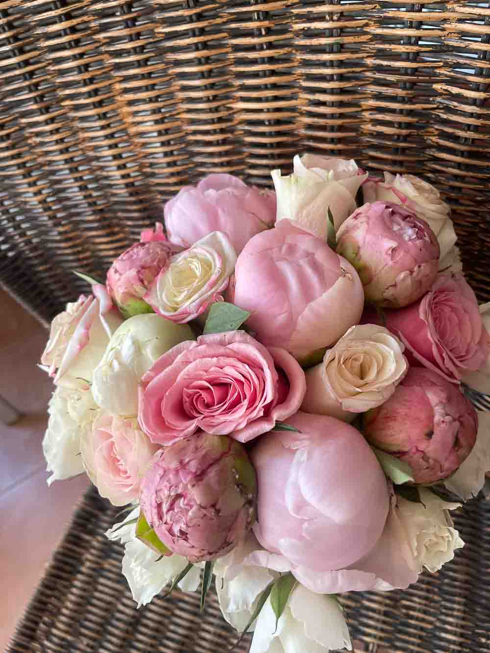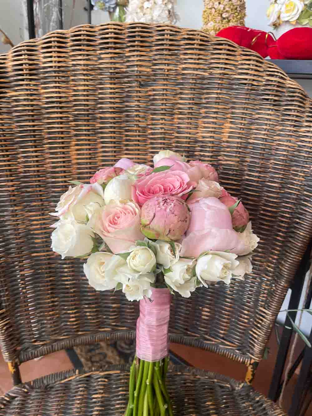 Ramo de novia de peonías y rosas en tonos rosas y blancos