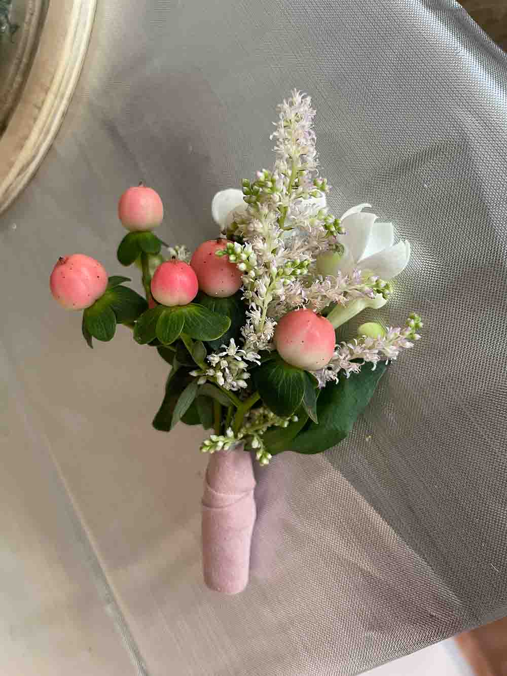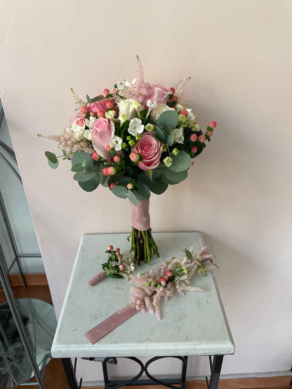 Además se prepararon pulseras para damas y prendidos acordes al ramo de novia