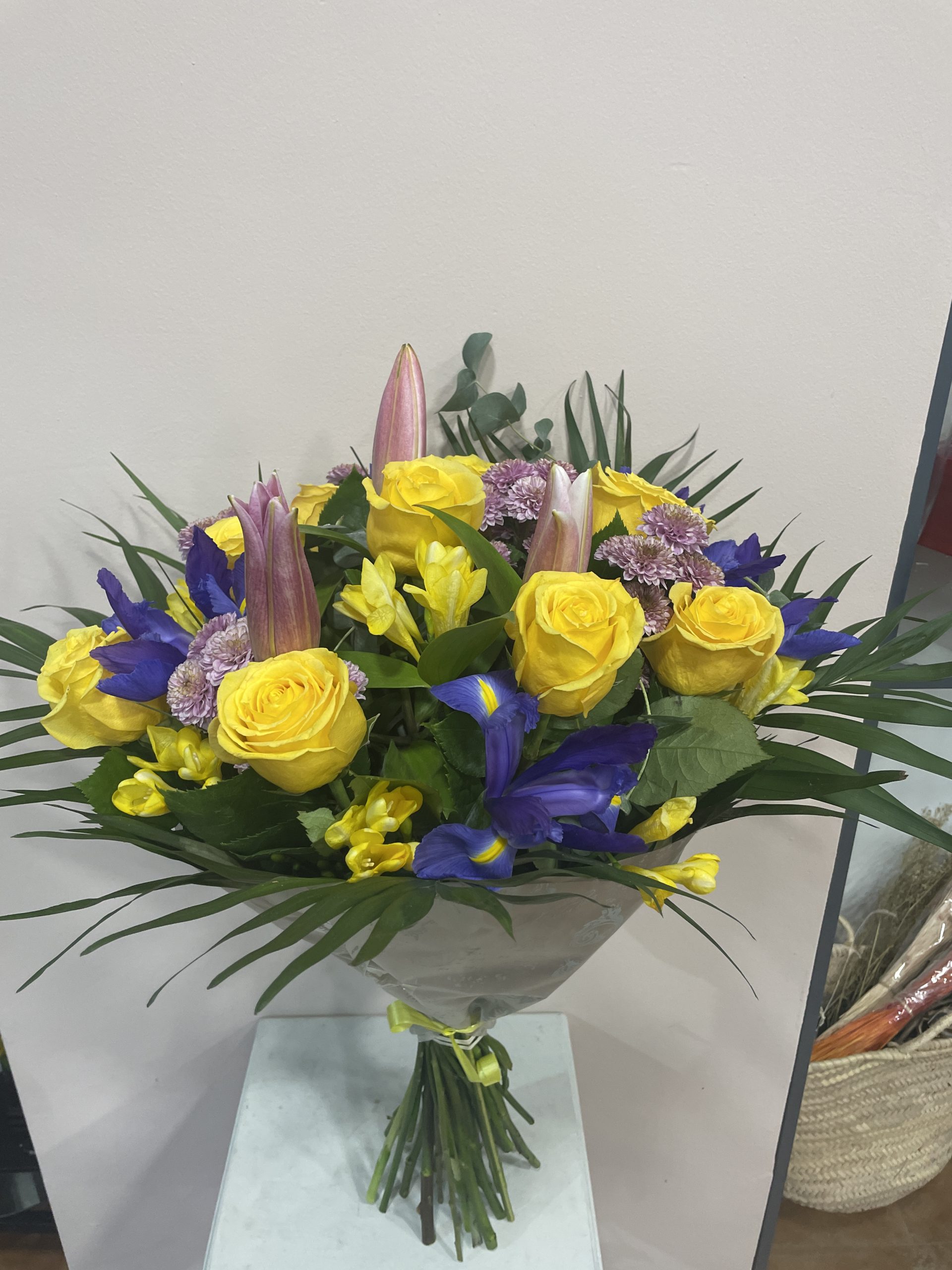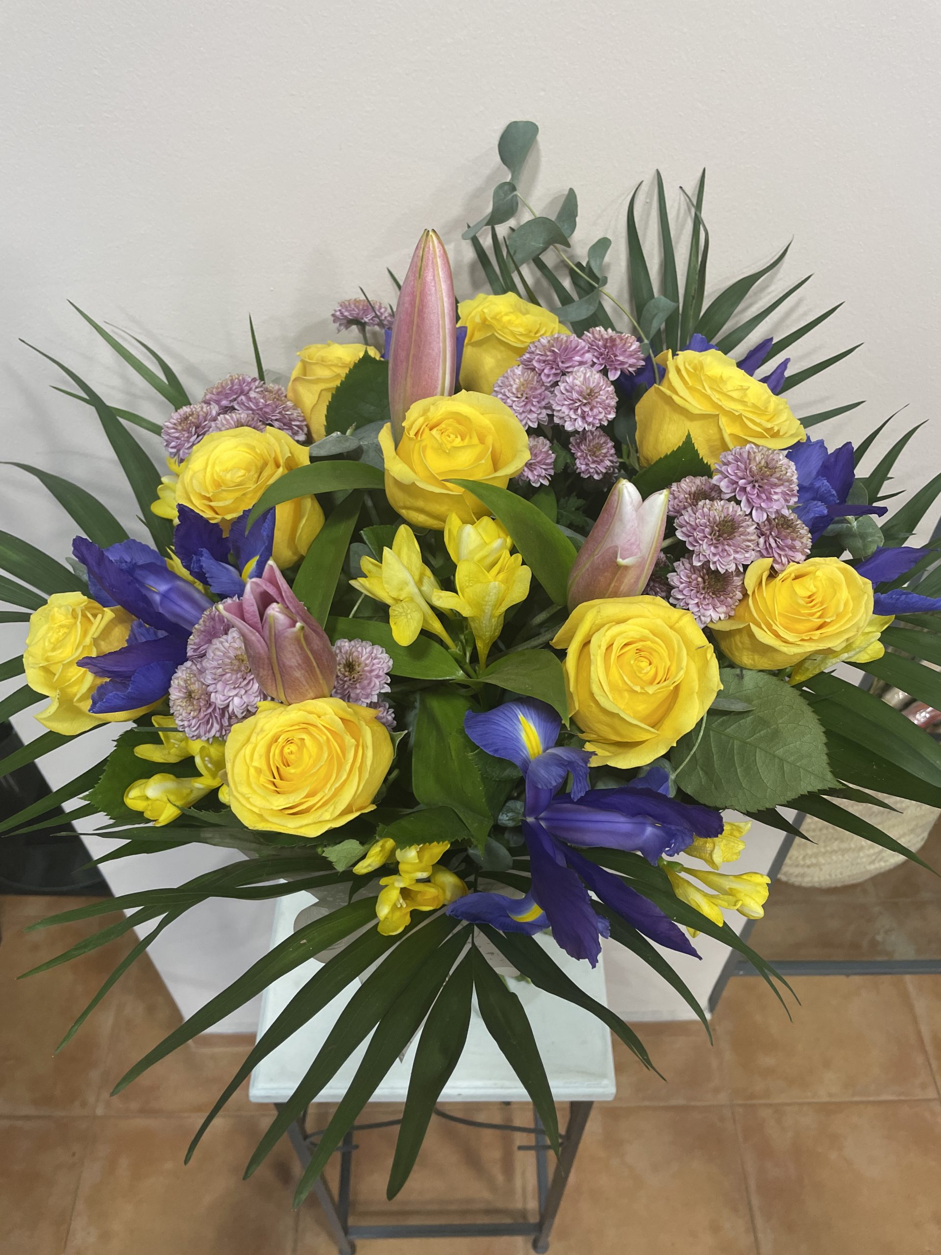 Ramo con diferente flor de temporada y rosas amarillas