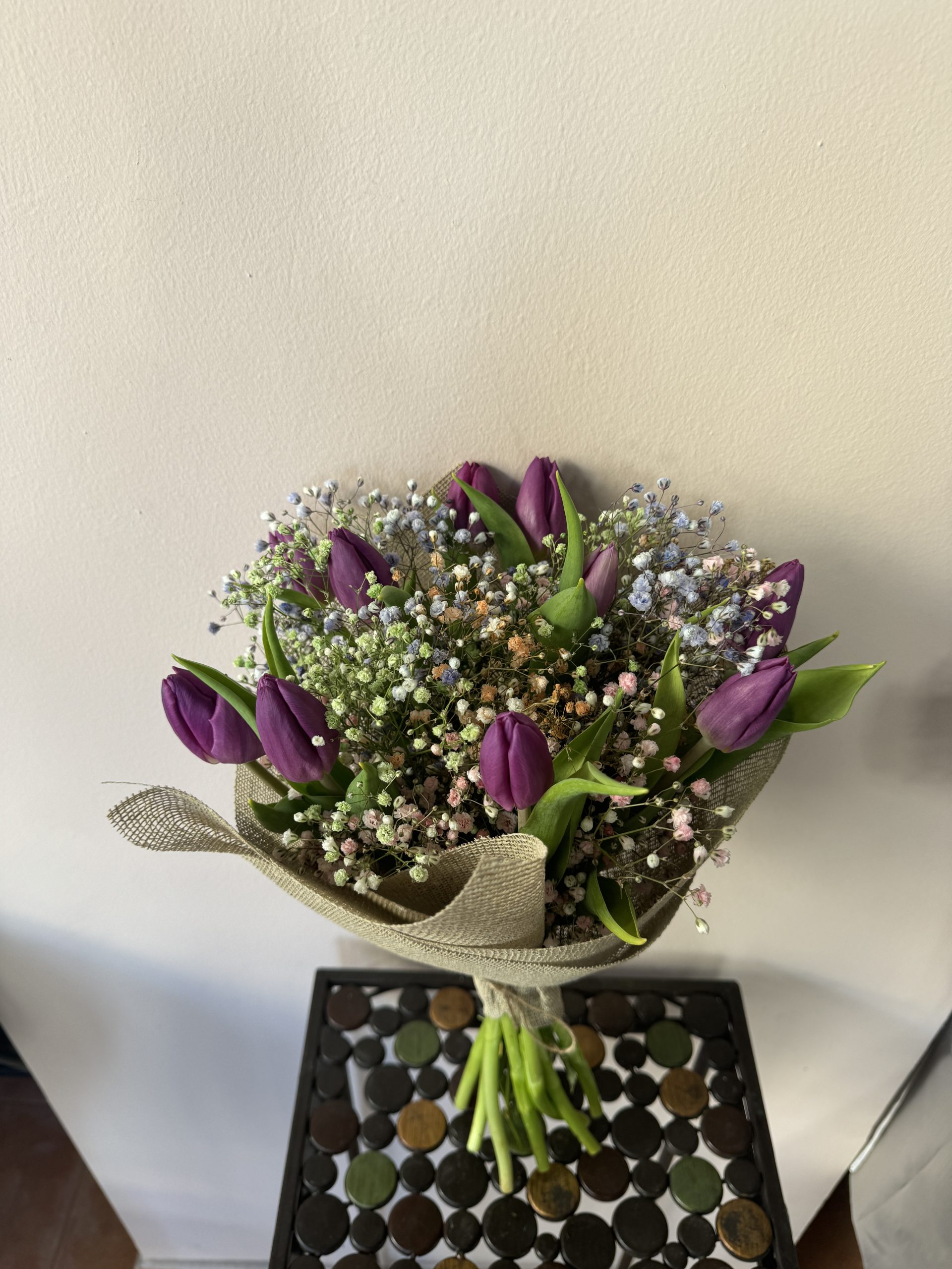 Ramo con 10 tulipanes y paniculata
